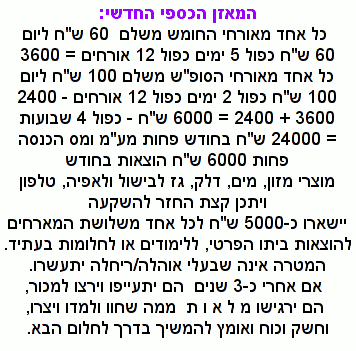minus maximum 6000 NIS for food, water, fuel (car) and gas (cooking,
