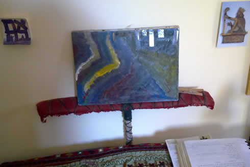 quote today lights up one aspect of the double experience of yesterday: Working with Meirav's mixed group of 30 middle-aged people for 100 minutes, and helping Lior with her Cinema-Studies in creating scripts, editing and filming. "Oh, I forgot my camera!" I said to Lior, when we entered Arad's youth-hostel. "There are religious people in the group, you are not allowed to take photos!" "There you see! the religious and the secular people want to meet in a group, but it's self-understood, that the secular have to succumb to the religious!" Then Meirav, the organizer of this weekend of the "Mosaic" Group, joined us. I repeated: "I forgot my camera!" "Very good so!" she laughed,"don't exaggerate!" Still, I was allowed to take a photo of these two friends of mine, one 38, one 22. BUT - the cellphone photo was not to be found, when I wanted to insert it here! I made a test with another totally casual photo-in my room- and came out alright. May this composition around my painting above my key-board serve as a reminder of a Shabbat too full with fruitful interactions and feelings to be documented here!