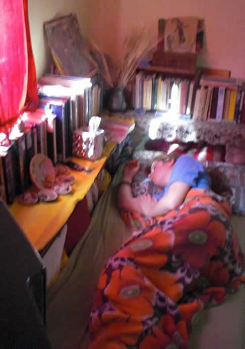 ![]() Following the first crisis Tomer sleeps for 14 hours on my veranda, with the light on all night. Close to midnight I call my friend Tzippi, who lives in the same street. "Please, help me". So she gets out of bed and comes and listens and helps. "Don't worry, he is a star-child after all".