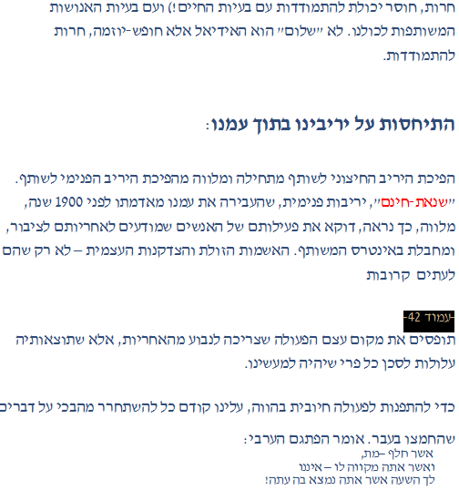 Dec. 30, 2010: two comments: a) It was only 5 years later, 1980, that I understood, that the motivation which I wanted other people to acquire : being responsible for myself, which means for my dependency on my community and my government, did not "work". the only motivation that works - if at all, as long as people do not know how to deal with their feelings of fear, powerlessness, lack of self-worth - is: "What is it that I enjoy creating" (in my words today: what gives me zest and full-fill-ment?) If the work for "Partnership" does not yield zest and full-fillment through creating, only obsessive activists will continue with it for any length of time. b) I truly applied the advice of Eccliastes 7:18 and whenever I found that a way was blocked, I looked for another way. But already in 1976, after my grand failure concerning the summer-camp in Bir'am, I discovered - while being at Taize in France for 24 hours, that if I don't let soil and sun and rain let the seeds and plants grow , if - on the contrary - I constantly interfere with digging there, composting and watering there - nothing will grow at all. The main job is done by the earth . air and water , by day and by night.yes by the night .too! |