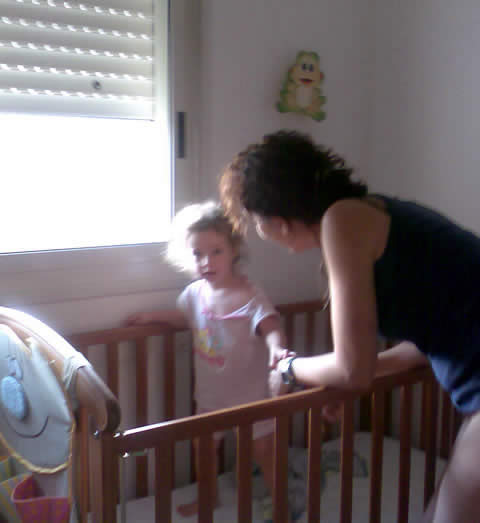 know: Mika so far has no share in the pattern of her mother and grandmother, the pattern of always wanting to please other people. On the contrary, she is rebellious, and even if she knows or understands, that a certain instruction has to be followed, she will not do so rightaway , but in a roundaboutway, "she will do it HER way", quotes her mother the famous song. [June 2011: Now her mother is troubled, "because Mika always wants to please people"] Sometimes, she doesn't know the limits, and there then is the nice "institution" of "the corner of thought", "pinat-hamakhshavah". It's far from a corner of punishment, as was the usage everywhere when I was a child. We had to turn with the face to the wall. No, Mika sits under the mirror and looks right onto the stage of her acting. She may cry a little, express anger a little, and already imma comes, bends down to her, talks to her to make her understand and then asks: "Do you want to say "slikhah"?" It doesn't take long, until Mika says, she is sorry, A hug, a kiss, a laughter and back to the stage of joy. |