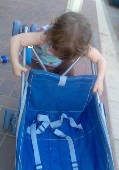 Fixtures like the one on her stroller are ideal for training skilfullness.