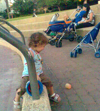 ![]() "yetzayee", she demands, instead of "le-tzayer" (to draw) not being able to pronounce "l" in most of the words, though in special moments she calls me not "satta" (savta=grandma) but "Rachel", pronouncing the word in general and the "l" in particular clearly and sweetly. So she is given pens or colors and paper and "draws".... September 20 |