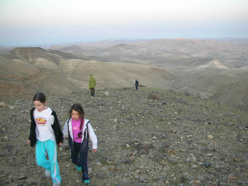 A walk with the Four to the south-eastern outskirts of Arad, from where the Dead Sea can be seen clearly.