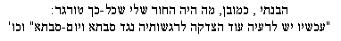 Shlosha-asar mi yode'a Shlosha-asar ani yode'a Shlosha-asar midaya shneim-asar shivtaya achad asar kochvaya asara dibraya tish'ah chodshei leidah shmonah yemei milah shiv'ah yemei shabatah Shisha, sidre mishna Chamisha chumshei torah arba imahot Shlosha avot, shnei luchot habrit echad elokeinu shebashamaim uva'aretz. |