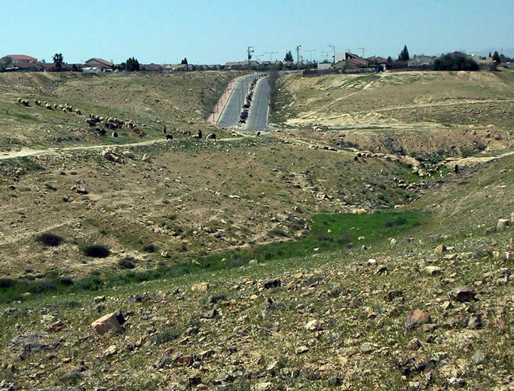 I saw a herd of sheep with a Bedouin shepherdess ~ forming a triangle ~ with