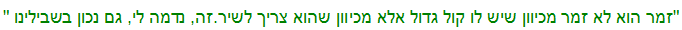 ![]() "This song is garbage, low, it insults my intelligence!" "What about "The Four Species atoning for each other?" "There are no willows [=people who neither know nor do] Those people lounge in front of TV to escape themselves and avoid developing their potential & their greatness!" "Yes they are sunk in the swamp of the vale of Babel, but they are YOU, too, and the way to rescue them, is to womb them and encourage their "small steps". "I know now, why our singing MUST be so incompatible: Your voice too high, mine too low, and yours out of tune. I imagined a "harmonious co-creation" for my birthday. But "kulanana" is about "composing one perfect picture". L:"I now judge my reaction and the way I cope with it!" "You see, it always comes down to wombing ourselves!" |