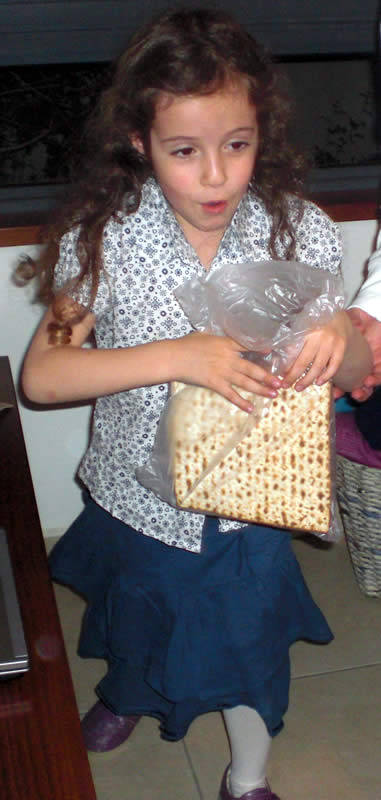 ![]() Mika (with Ayelet's help) found the "Afikoman", and is promised a gift by her mother (it should have been only half of the mazza...) |
