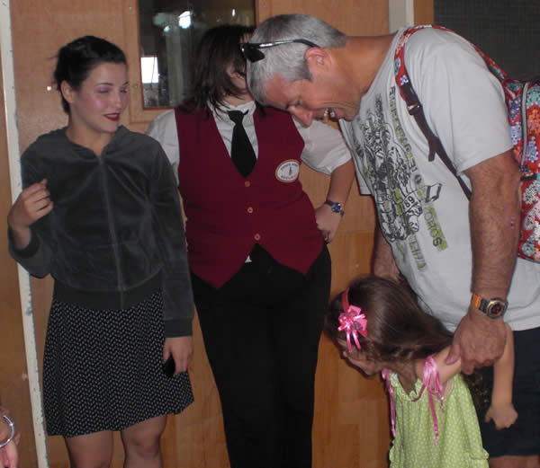 ![]() Alon [for whom Mika drew this heart] and the balloon: Mika's stepbrother Alon is not close to anyone of the family. But recently, before the day of his recruition to the army, (to the Navy, according to his wish), he spend some time with Mika on a walk. It was there, where he bought her this - now gas-less tired - balloon. It flew around my room, swept by the vent or by the airconditioning, and time and again Mika and I had funny encounters with it. On this day it flew out of the room and up the dangerous staircase. Mika was just coming down and - not thinking - tried to jump and catch it. By chance we both saw this, Immanuel from above and I from belove, and we both uttered a scream. I wanted to throw the thing away then, but Mika protested: "No, the balloon is from my brother, from Alon!" |