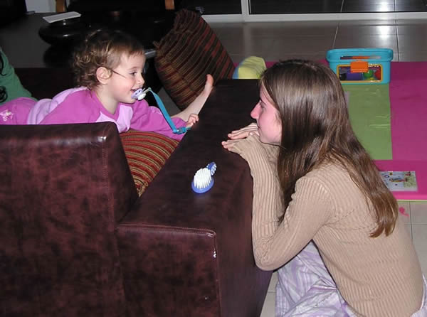 Rotem 7 weeks before her 14th birthday, with Mika, her youngest cousin = my
