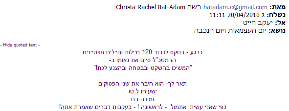 and tune:: Christa-Rachel Bat-Adam June 6-21, 1984, lyrics March 7, 2007, tune |