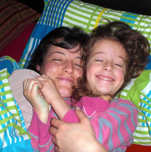 When Mika woke up , she crept into her sister's bed.