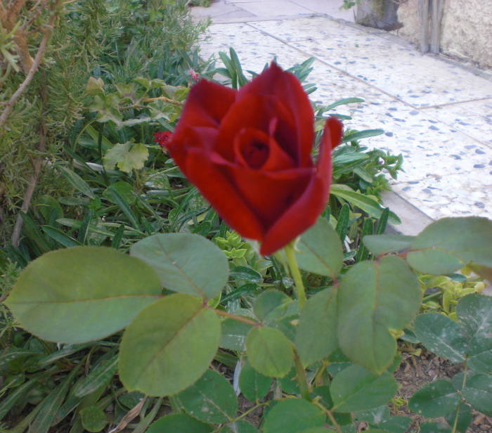 plant-nursery at Arad finally managed to find me three different colors of roses. My landlord, who only recently had freed this spot - my former compost-hole - from a load of bricks, helped me to transport them to "my" garden. |