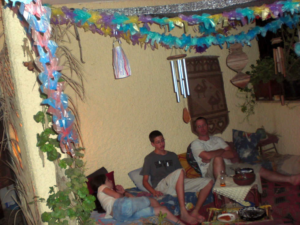 There it is: the triangular tent-roof of our succah on my veranda, the triangle
