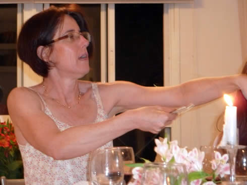 ![]() Ronnit performs the ritual of distributing the first Mazzah, in a humorous way |