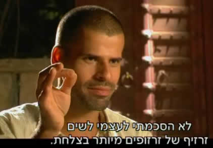 ![]() Eyal: " Is that you? withhout shofarot (plural of 'shofar', the horn that's blown on Rosh-Hashanah). in silence? Roshfeld: "That's not exactly silence, but it's not a band of..." |