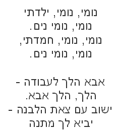 This is one of those old Hebrew sungs, which will never become "old". Still, I wanted to change the text a little, so it would fit Mika's life situation: ![]() |