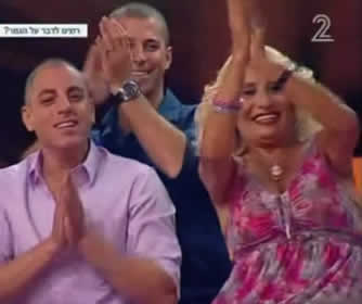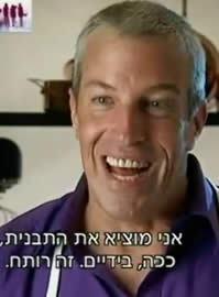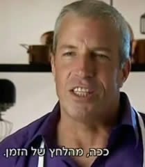 "You three great ones, how are you?" And - facing Elihav - laughs:: " You seem to be relaxed" - Elihav: "Imma-leh" Michal: "Immanuel, tell the truth, is this more pressuring than flying a plane with 400 passengers behind you?" Immanuel thinks for a second: "Yes! To fly 400 passengers, that's a process which we learnt, step by step, very structured. In the end there is excitement, but here it's a roller-coaster, nothing is forseeable, everything in total craziness" |