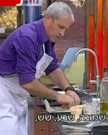 right!" Elihav, with irony: "Of course" Chaim: "You'll cook 2 dishes, a first dish [appetizer] and a main dish. After 45 minutes from the beginning of the assignment, the waiters will approach you , take from you the first dish, bring them to us for tasting . After an hour and a half from the beginning of the assignment, the waiters will approach you again... The judges will give up to 40 points to each dish... The first dish must include fish, and the main dish must include meat - are you ready?" "READY". |