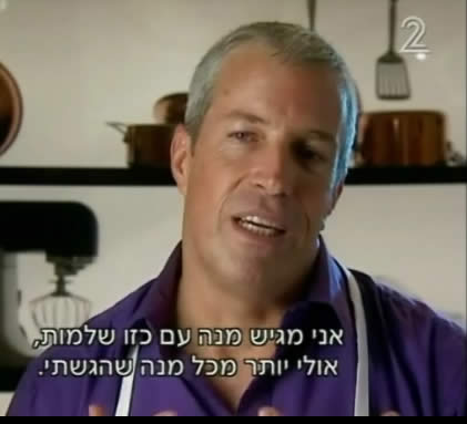 comment: since at this stage I could no longer trust the production and the judges, and since the contrast between Immanuel's heavenly wholeness during the preparation of his Knaafeh, and the harsh judgment, yes slander, which his dish received, is so strong, I ask the forgiveness of Avi and Elihav for not documenting here, how their dishes were highly praised. I say it again and again: It is perfectly alright for me, that Immanuel came out as the third, but the slander of his Knaafeh is NOT alright. |