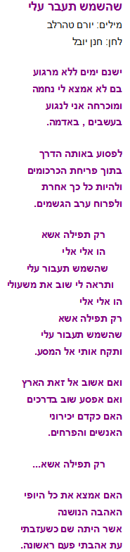 I worked on my sculpture of June 21, 2011 I forgot about my own singing on June 2, 2011, Nor did I realize, that the composer of this song was the same who sang in Tel-Aviv on June 9, 2011, in the commemoration of Lova Eliav's death a year ago. For it was only on June 21, Solstice, that I completed to learn and sing the song by heart. I recorded it , without discerning the soundbutton below. All this occurred perhaps, because I, too, was "a Christian girl", who met her love in Israel (1960), [not her first love though, but the one who would become the father of her children,] a girl who came to Israel again in (1964) and "for good"! my singing June 2 on October 6, 2011, I am deleting this soundbutton, since I need space for Yossi's singing to the mothers.