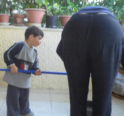 teamwork with my landlords' children Lior (6) and Amit (3)
