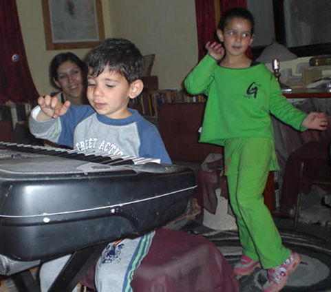 While Arnon was still at his home, he sent an SMS "Please , Savta, let's have "Pfannkuchen" for desert! See how often this dish appears on Healing-K.i.s.s.... Mika begins to prepare the dough with great enthusiasm. She already is a little "Masterchef" like her father and, for instance, opens 3 eggs with perfect skill. When the family of her cousins arrives, Arnon shows us some "youtubes", uploaded by his co-players in the musical "ensemble" of his school. |