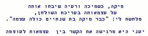 the tiniest pain: "Shum davar lo ko'ew li!"I smiled at him : "nothing hurts me at all!"