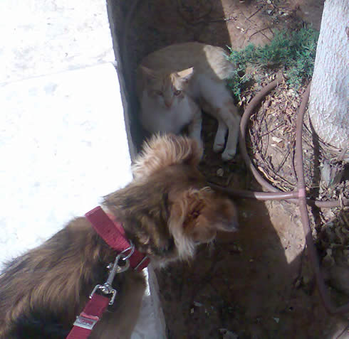 In the morning I walk Nella, and for a change - she forgets to bark at a cat
