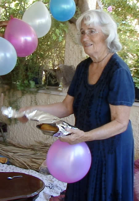 Efrat lets her talk with her mother, Savta Mirjam. |