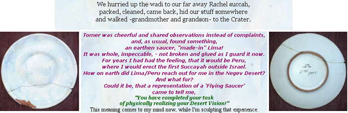 GO of seven Succah paper-photos There are four big photos of how the Succayah was at my time, i.e. from Pesach 1990 till October 1994 (the Abraham-Succah seen on the first two pictures, burnt down in 1998, and Avi Dror rebuilt his own version.) I began to talk to myself harshly: "You want Avi to clear-off all traces of human creation in this wadi, but you can't even let go of your paper-photos, and this though they have all been inserted in your website long ago." Finally I dressed warmly, went out into the cold and endless rain, down and up the "Wadi of Compassion" to "the Grave of Grace" which I've been planting and watering for about half a year, after having brought soil from far away |