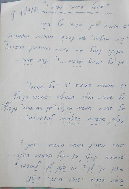 will ever be whole, for wholeness is a fragile thing, it's there in a moment and then it's gone again." She understands well, that "wholeness means self-acceptance of all I am and feel, with no denial present". I told her, that wholeness IS, when the time between denying and accepting becomes shorter and shorter. The "fractal" episode with Ofir was staged so that I could watch, how fast a process towards wholeness can be: I had judged myself for having been haughty and critical. When I wombed myself and the way I had felt and talked, the first reaction was: "I must correct it I must apologize".. I sent an SMS apologizing. But the "higher idea" was still to come. When I saw that my behavior had happened on Ofir's birthday, I felt even greater shame. I went to see him, but he wasn't there. The idea came to write, though it was exactly "e-mail" that had been the issue: "I see again, that you don't open e-mails, so I'll never use this means again." Understanding quickly, that I could have sent an SMS: "I wrote you an e-mail, please open". Now this second e-mail allowed me not only to express my shame, but also to sculpt a thoughtful/feelful blessing to his birthday, for which he then thanked me - by e-mail : "meragaeshet me'od". It was truly "turning mafri'a la-mafrae", the frightful into the fruitful. For a blessing enwrapped in a bit of turmoil will become more imprinted in his mind and heart. |