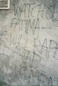 get hold of the headmistress". is smeared on several walls, even inside the courtyard. Yesterday someone reached through a latticed window, smashed the CD-player and casette recorder, which serves the teachers and pupils, grabbed a Qor'an, tore it into hundreds of pieces and scattered them all over.. |