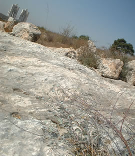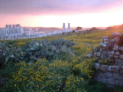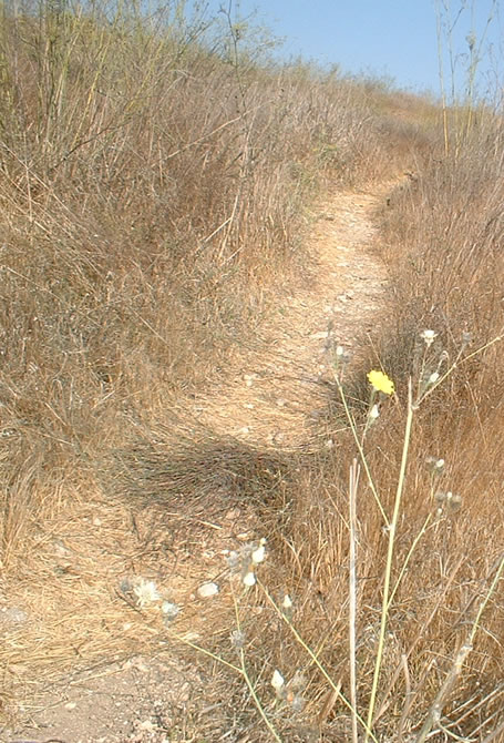 ![]() This wadi was one of the most difficult passages to navigate through.. naughty Asparagus shrubs needed to be avoided, big stones of a terrace needed to be surpassed, and the jungle of herbs often taller than me had to be cleared. The terrace, once erected to bar the flow of the rain water, so that barley and wheet, olive- and figtrees had a chance to grow, now nourishes only thistles and thorns. |