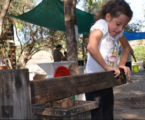 We sat under the porch of the recently rebuilt Rivqah [Rebecca]