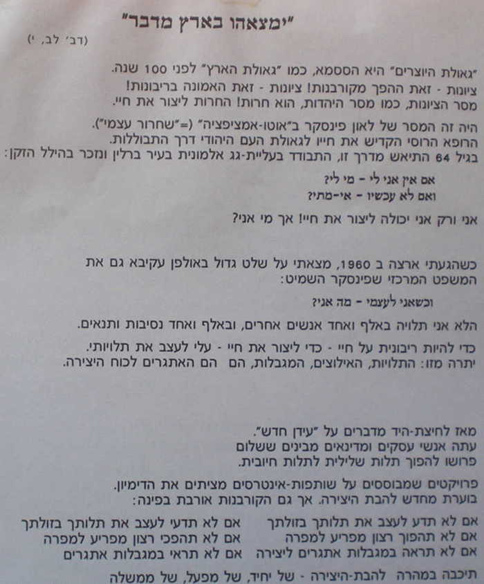 in which I entrusted "Succah in the Desert" and the so-called