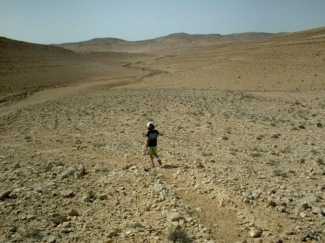& grandma walk my path - 3.50 km - back from the Alpaca-farm. Ilan and Na'ama Dvir, the creators and "owners" of this unique place fenced in 500 square meters , which is a grave violation of Desert Law. Ilan made a gate for us, when we connected the Succah to the farm. 7 years later the path is intact, but the fence is gone, as Jonathan proves.