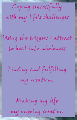 "When the Will receives judgments instead of love and light, it becomes lost from the light and thus the term, "Lost Will." The definition of love needs to be expanded to include emotions that have been labeled "negative." Much of what we've judged to be negative became lost so long ago no one remembers what happened to it. These lost memories go as far back as our origins. How you really feel is what needs expression and in the most natural way possible. Temporarily, at least, suspend words and emphasize non-verbal sounds. Doing this in private can evolve these emotions. |