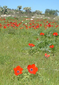 and to the brilliant anemones in the fresh green grass